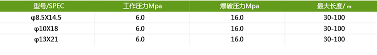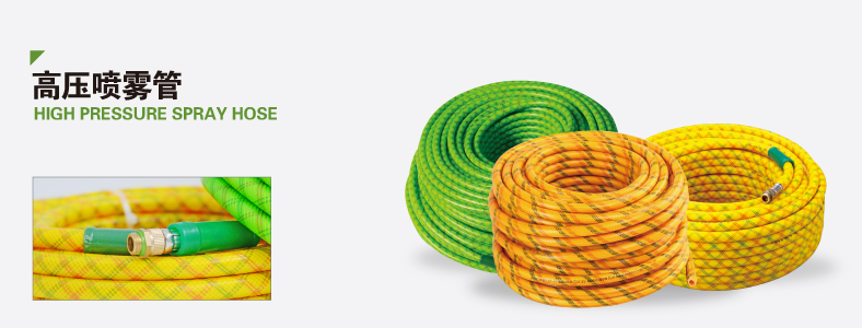 高壓噴霧管內層采用抗酸堿及耐藥型塑料,中層編織高密度、高拉力纖維,可抗160公斤爆破壓力,易于操作,靈活耐磨。外皮添加UV抗紫外線劑,烈日下暴曬不易龜裂??砂凑湛蛻粢笾谱鞲鞣N規(guī)格以及國際標準接頭。